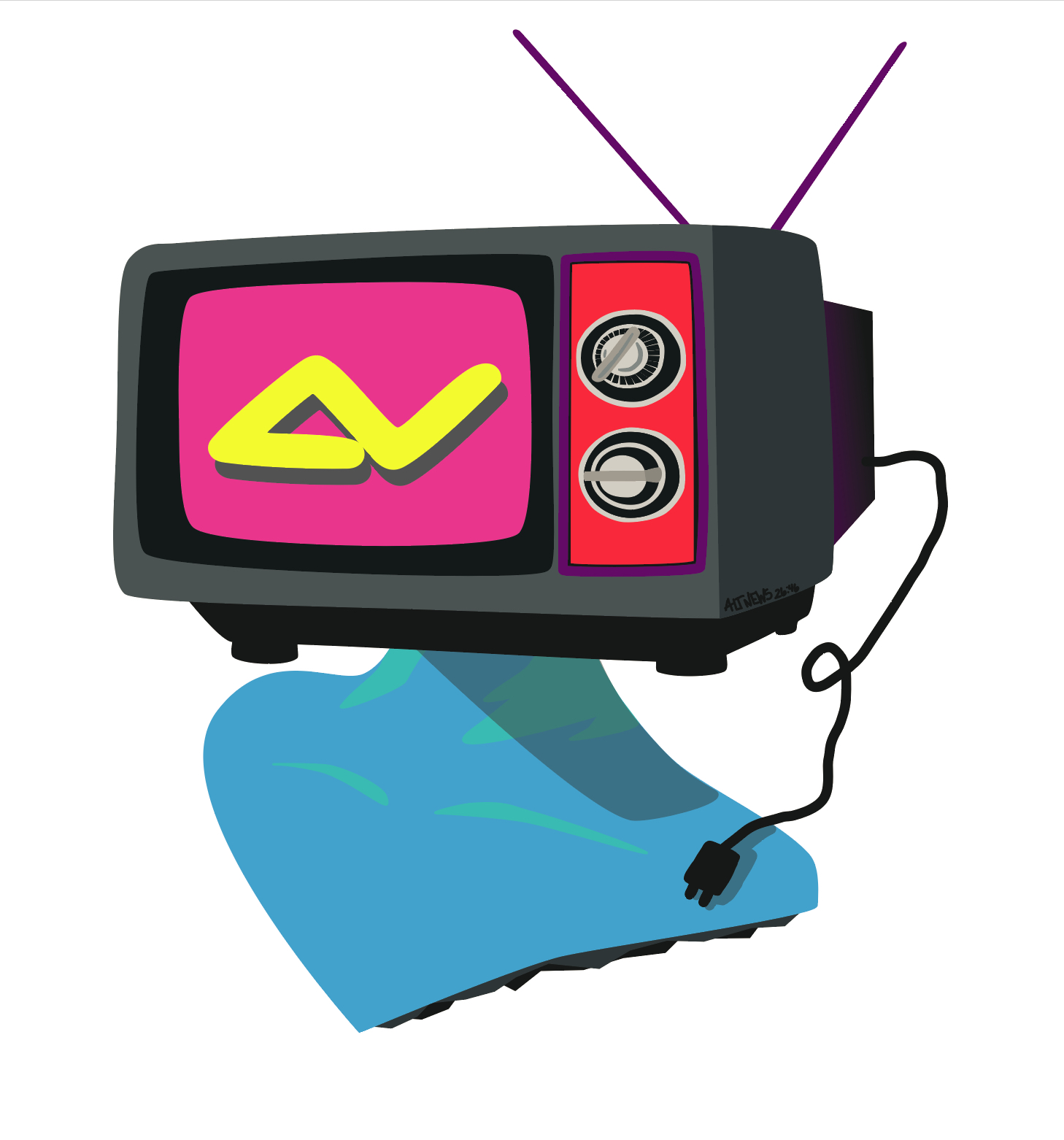 As a member of alt.news 26:46, I contribute to the visual identity of the show by designing updated graphics each semester, including t-shirts, stickers, and promotional materials. I’ve created numerous original sticker designs and developed a custom tshirt design featuring a hand carved woodblock print. While staff roles are fluid and collaborative, I gravitate toward design and craft based contributions. I also enjoy assisting on set and taking the lead on hands on, creative tasks whenever possible.